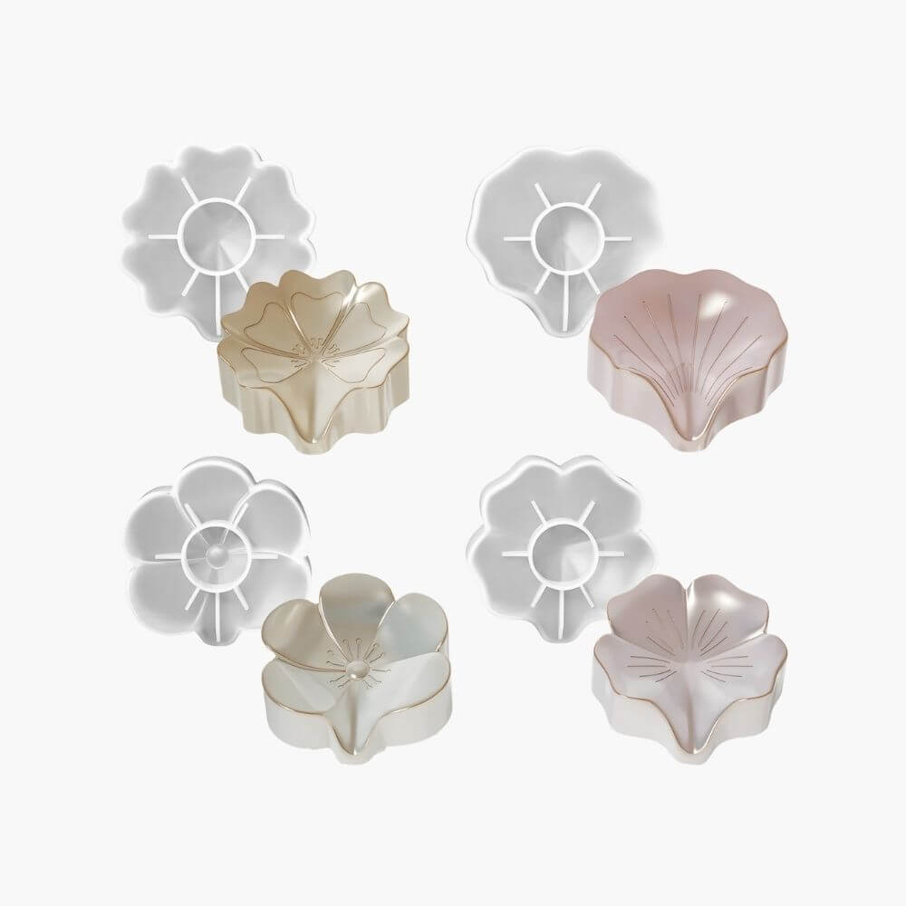 Each set includes four complementary designs ranging from 4.05″ to 4.33″, featuring intricate petal details and sophisticated sunburst patterns. Create beautiful pieces that combine artistic elegance with practical functionality. Perfect for crafting soap dishes, trinket trays, or refined home accessories.