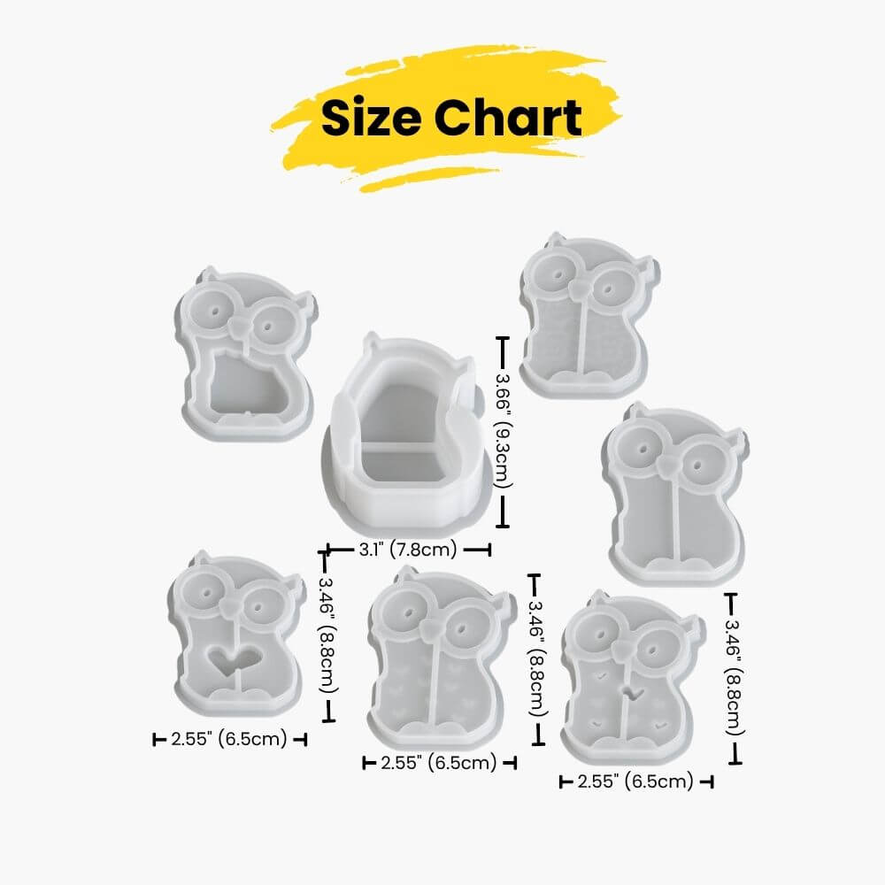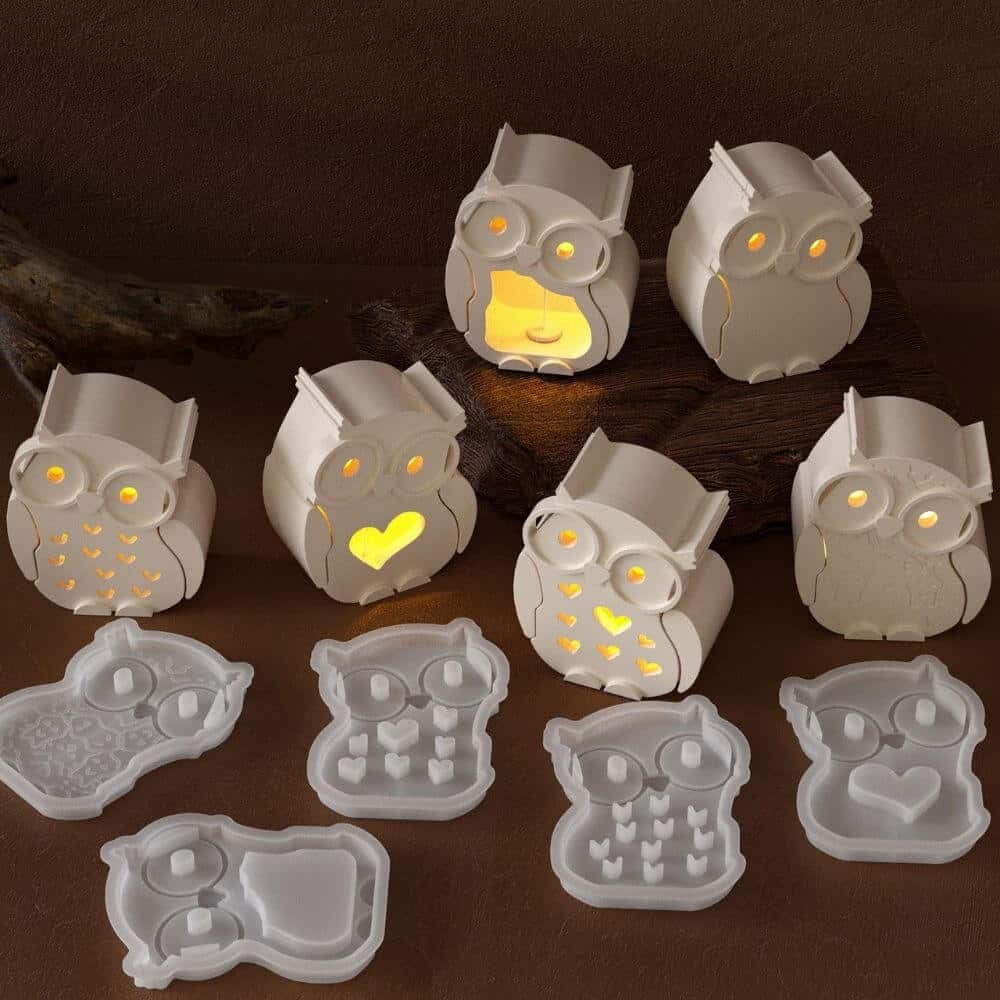 Light up your nights with these enchanting owl night light holders! Our comprehensive mold set lets you create 6 different owl designs, each with its own personality and charm. When illuminated, these owls cast a gentle, magical glow through their hearts, patterns, and wise eyes – perfect for creating a cozy atmosphere in any room.