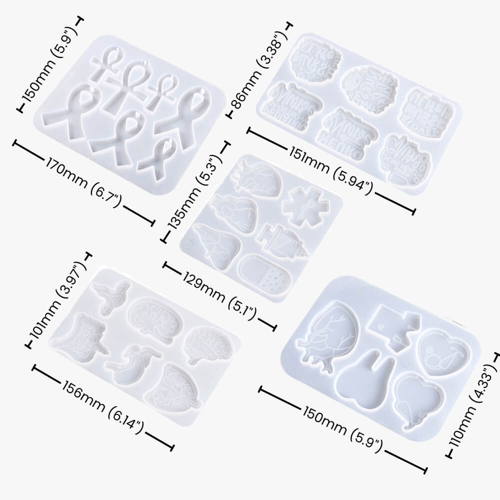 As shown in the image, this 5-Piece Nurse Badge Reel Resin Molds Set set features 30 designs that perfectly capture different nursing symbols and themes, allowing you to create a variety of unique and stylish badge reels effortlessly.